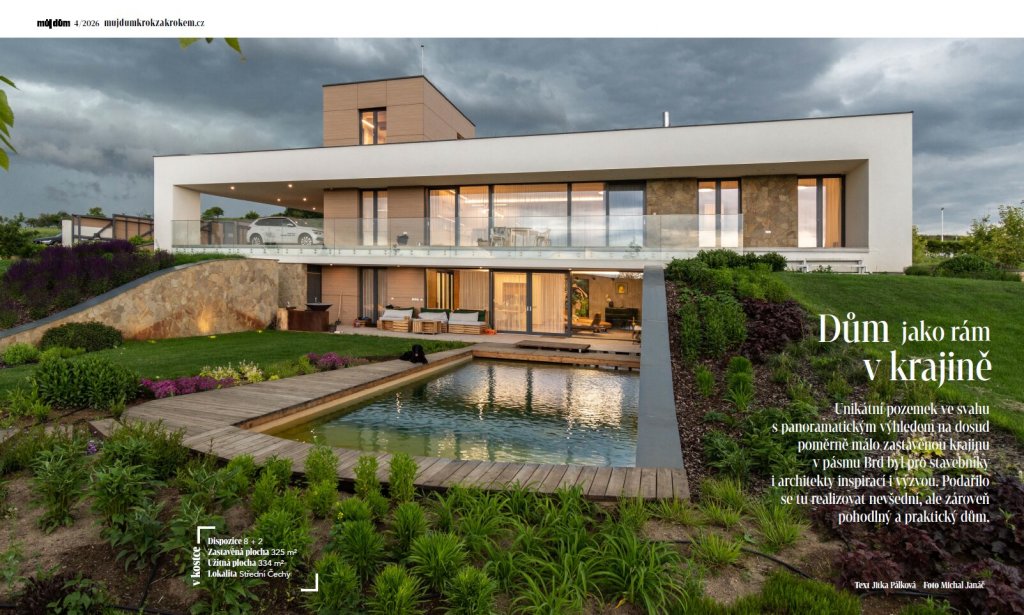 Novostavba rodinného domu je příkladem zajímavého architektonického návrhu, citlivého zasazení do okolní krajiny, skvělé spolupráce mezi architekty, realizační společností i samotným investorem a zároveň precizního provedení. Stavba byla přihlášena do soutěže Stavba roku Středočeského kraje 2020 a získala Cenu za architektonické řešení individuálního bydlení.