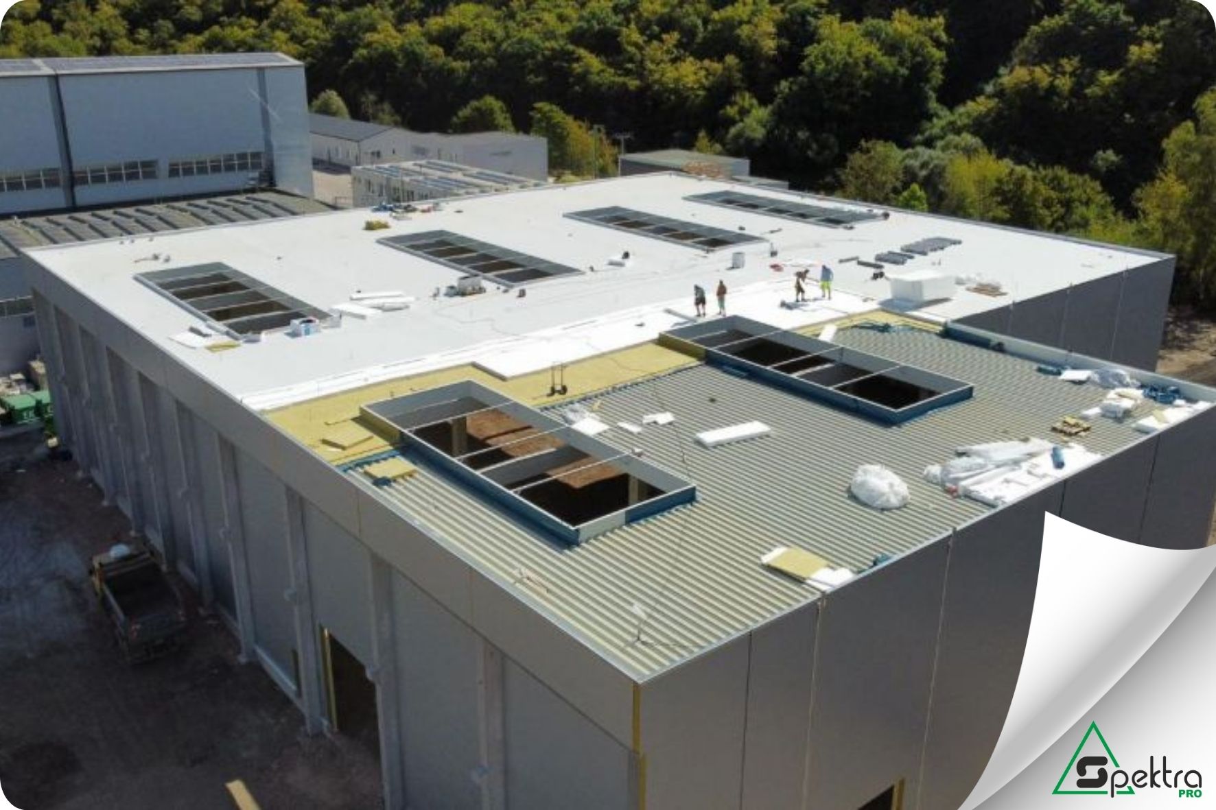 Na železobetonovém skeletu je prováděno opláštění a stření konstrukce